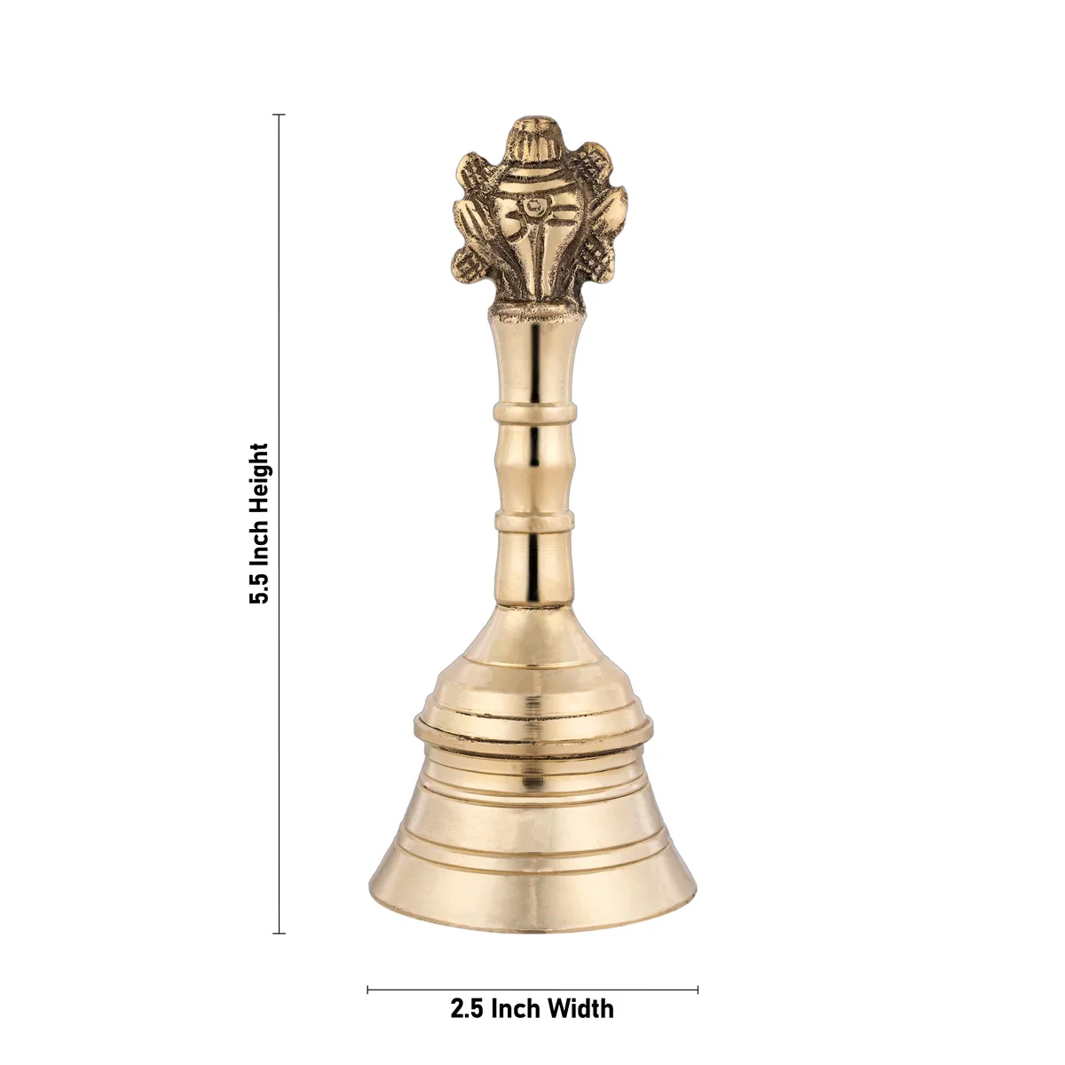 Hand Bell - 5.5 x 2.5 Inches | Shankh Chakra Handle Ghanti/ Pooja Bell/ Brass Bell for Home/ 330 Gms Approx