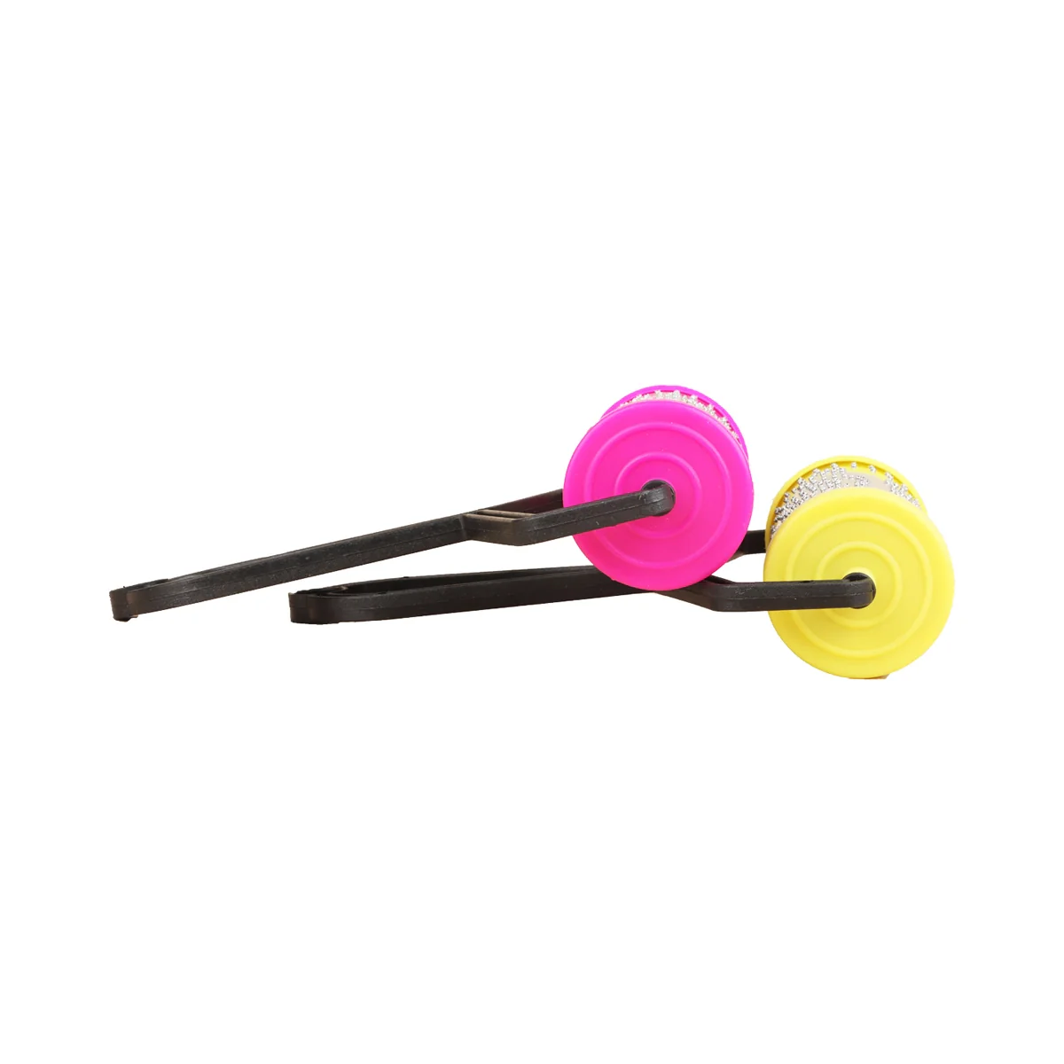 • The caps act as wheels when placed on a surface, and one can control their motion by using the chain to get different rangoli patterns.