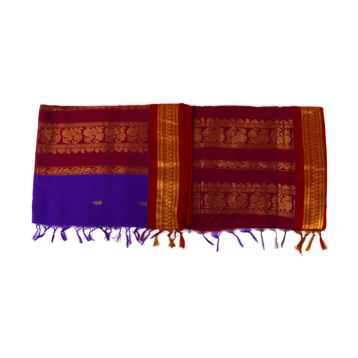 • The intricate patterns and heavenly symbols found in Indian temples serve as inspiration for our sari designs, which have a vast and ethereal quality. Symbolic themes, conventional boundaries, and intricate patterns combine to produce sari. It can be worn for festivals and traditional ocassions.