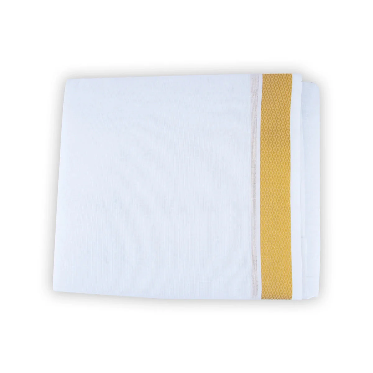 • The Mayilkan border has been used to highlight this dhoti, giving it a rich, detailed texture.